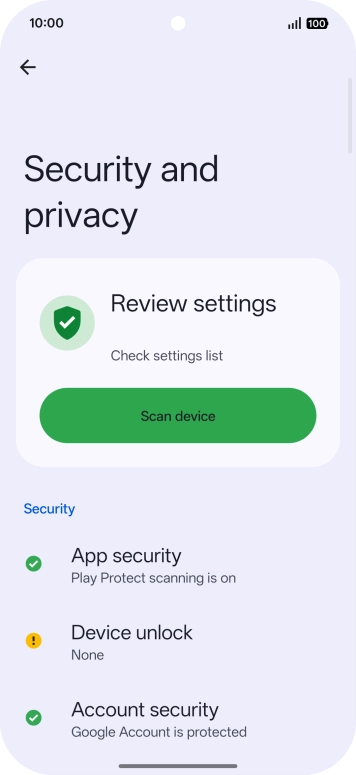 Press Security and privacy.