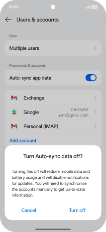 Press the indicator next to "Auto-sync app data" to turn the function on or off.