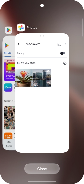 Slide your finger slowly upwards starting from the bottom of the screen until the list of running applications is displayed.