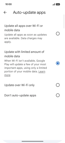 To turn on limited update of apps using mobile network, press Update with limited amount of mobile data.