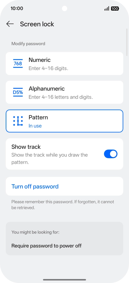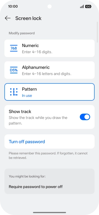 Press Turn off password.