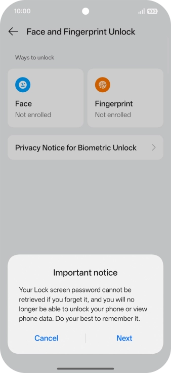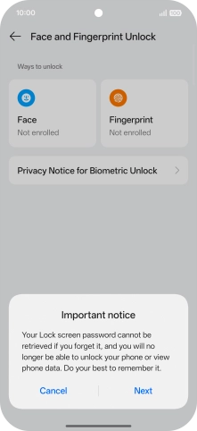 Press Face and Fingerprint Unlock.