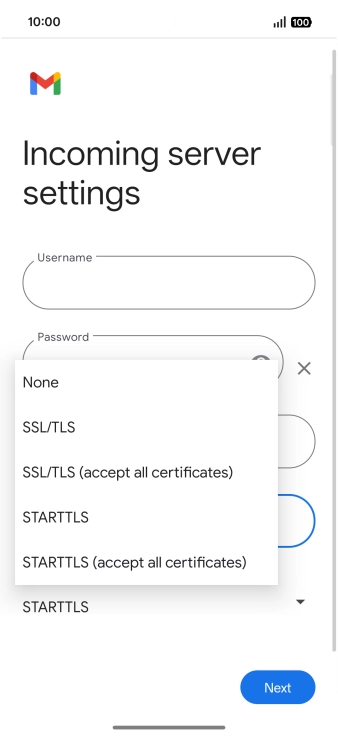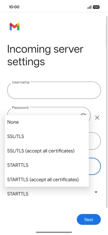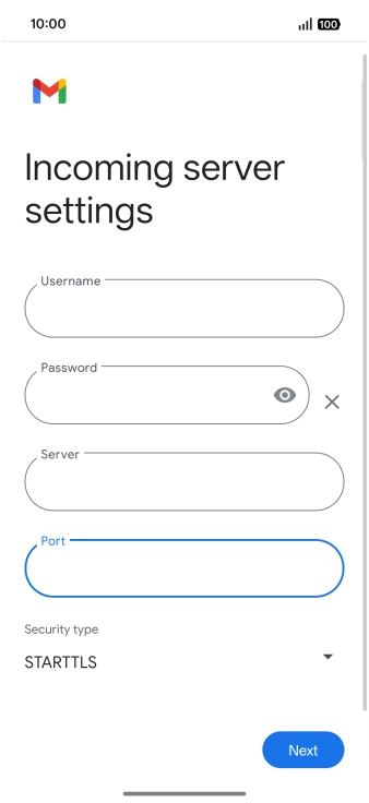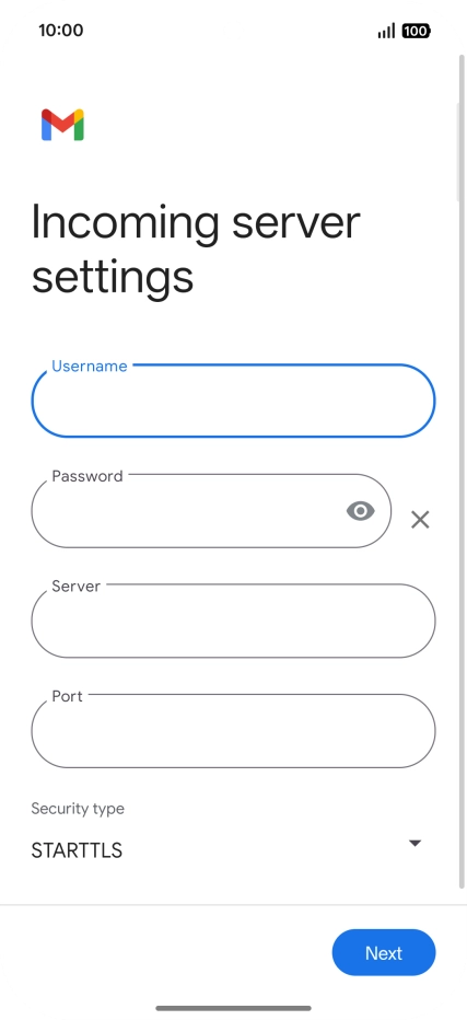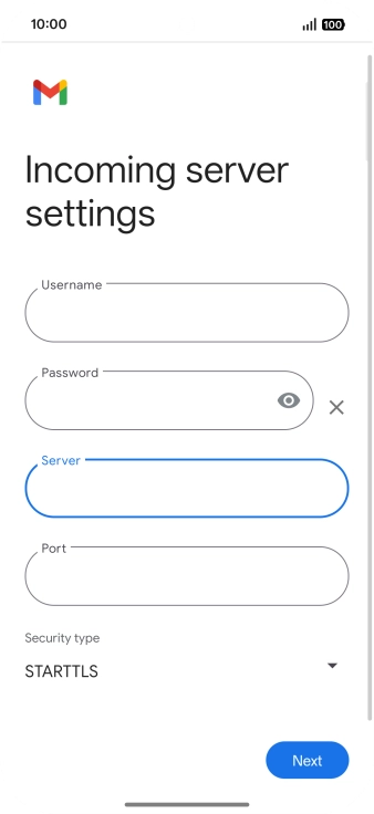 Press the field below "Server" and key in the name of your email provider's incoming server.