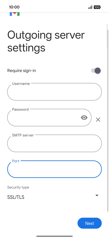 Press the field below "Port" and key in 587.