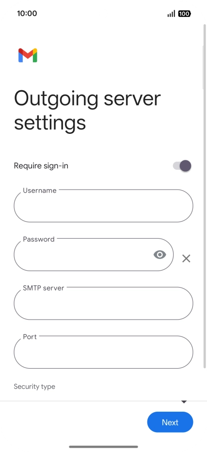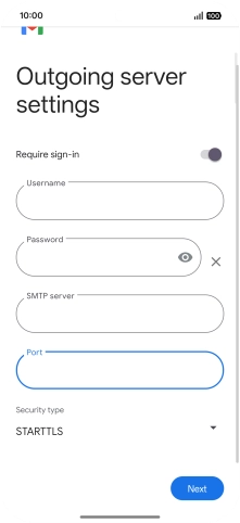 Press the field below "SMTP server" and key in the name of your email provider's outgoing server.