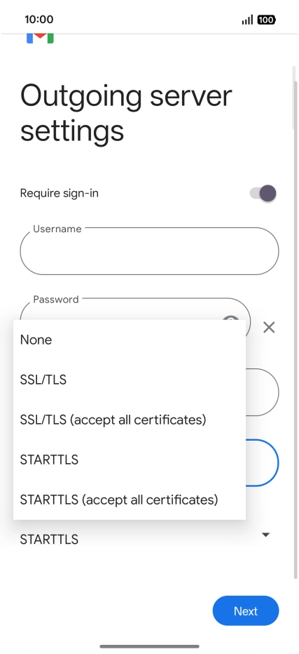 Press the field below "Username" and key in the username for your email the email provider's outgoing server.