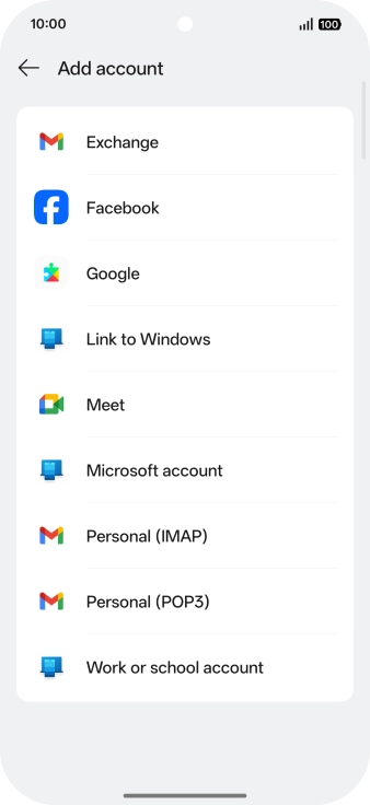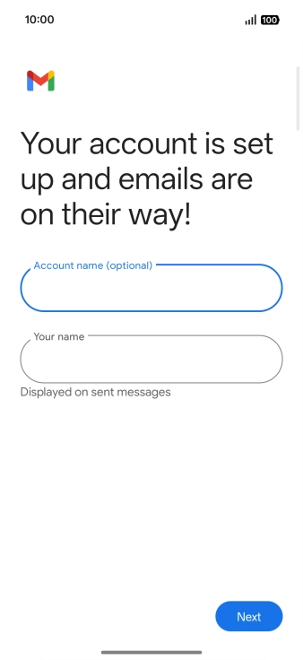If this screen is displayed, you email account has been recognised and set up automatically. Follow the instructions on the screen to key in more information and finish setting up your phone.
