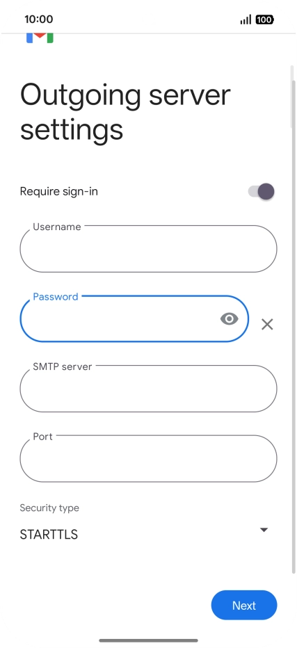Press the field below "Password" and key in the password for your email account.