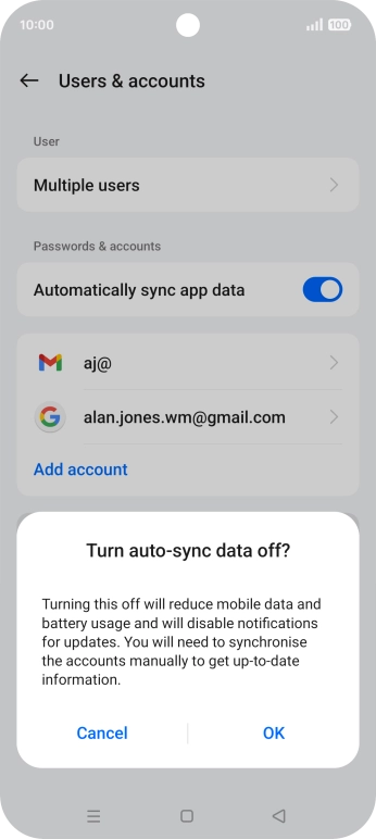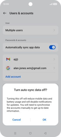 Press the indicator next to "Automatically sync app data" to turn the function on or off.