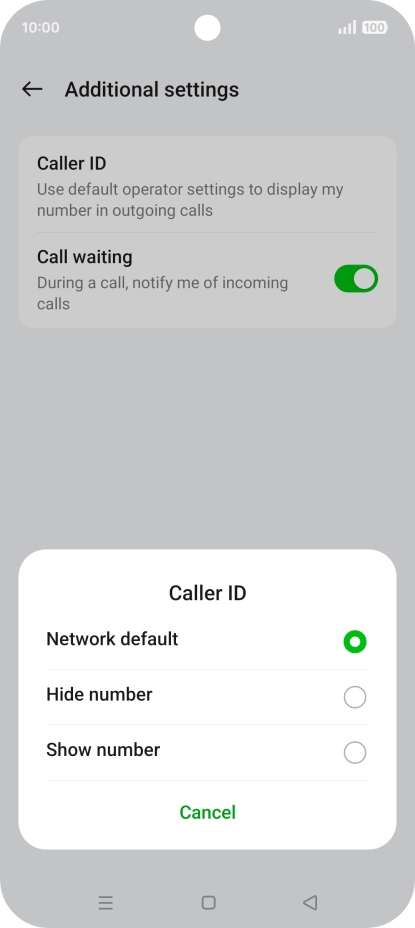 2 Turn your own caller identification on or off