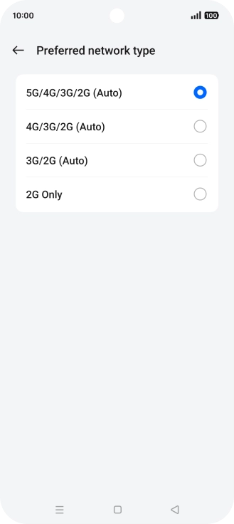 Press Preferred network type.