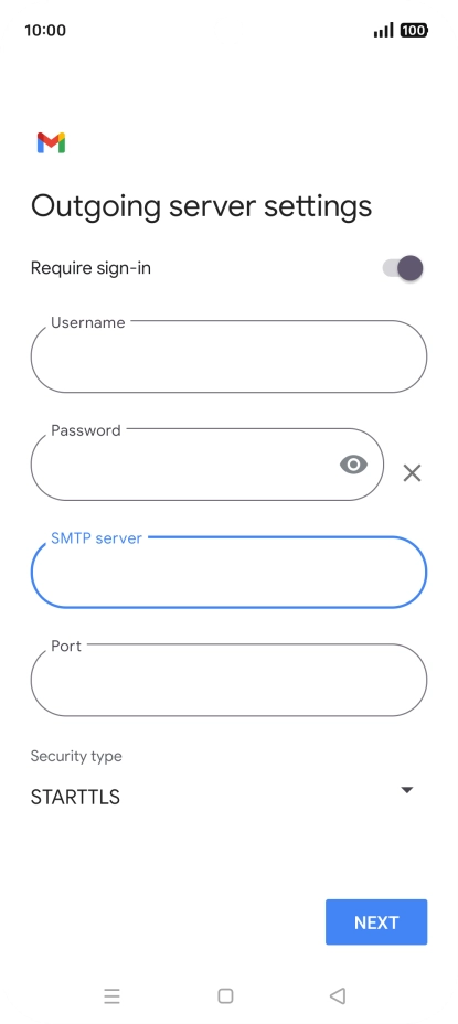 Press the field below "SMTP server" and key in the name of your email provider's outgoing server.