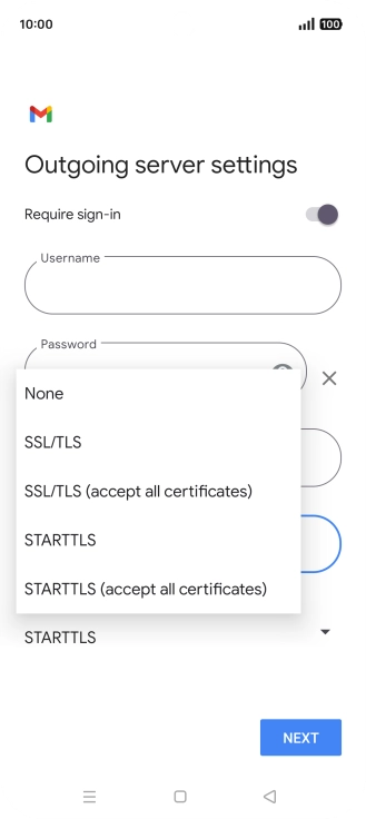 Press the field below "Username" and key in the username for your email the email provider's outgoing server.