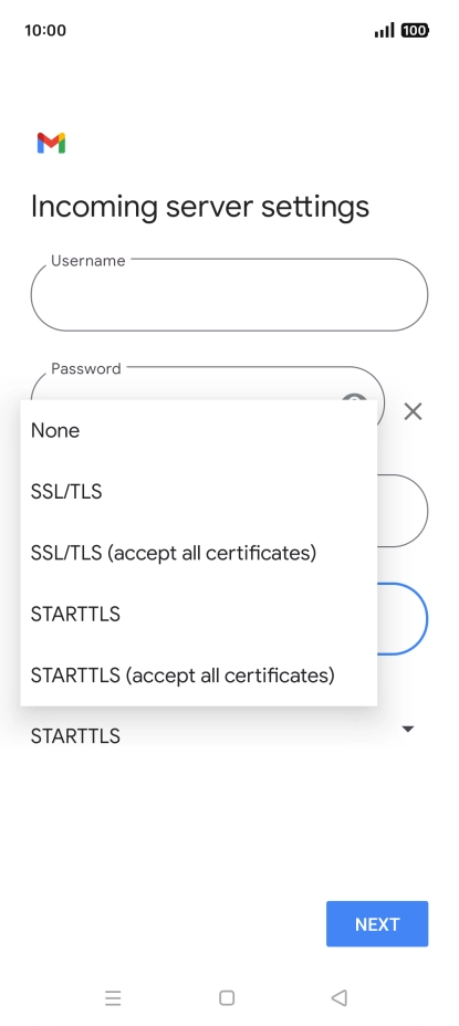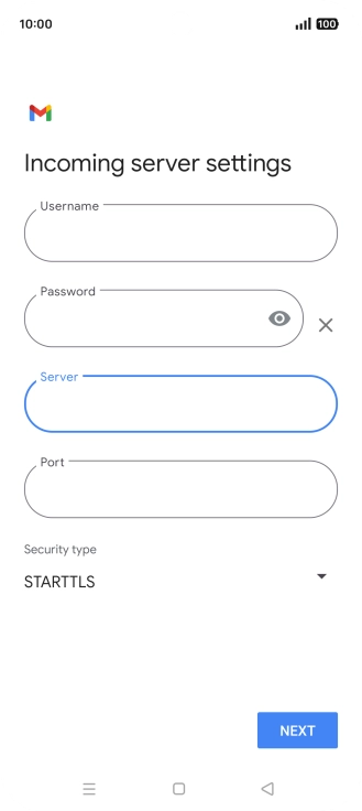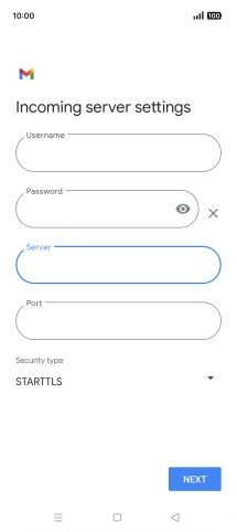 Press the field below "Server" and key in the name of your email provider's incoming server.