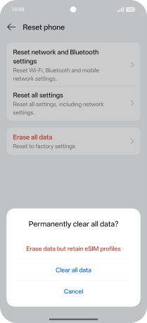 Press Reset. Wait a moment while the factory default settings are restored. Follow the instructions on the screen to set up your phone and prepare it for use.