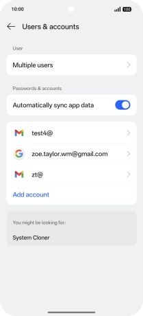 Press the indicator next to "Automatically sync app data" to turn the function on or off.