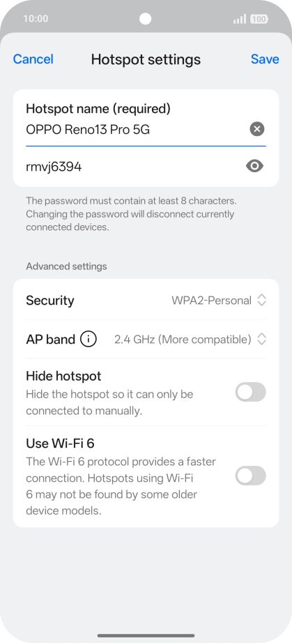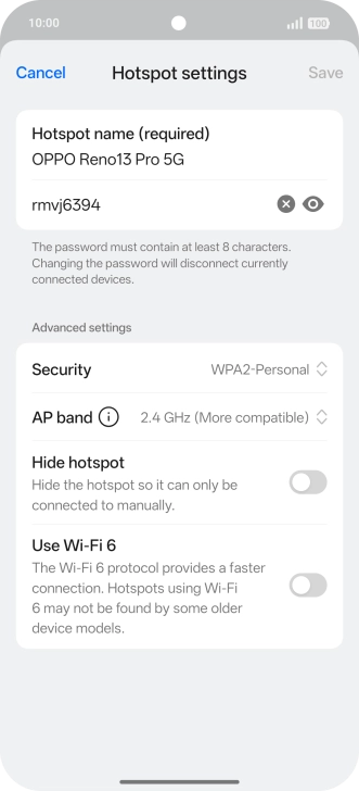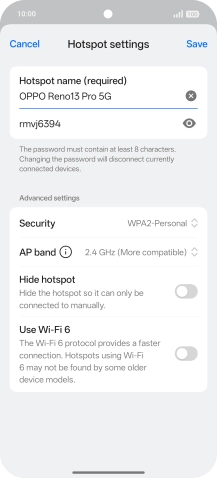 Press the field below "Hotspot name (required)" and key in the required name.