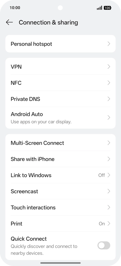 Press Connection & sharing.