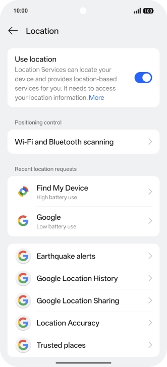 Press the indicator next to "Use location" to turn the function on or off.