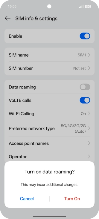 2 Turn data roaming on or off