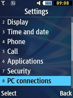 Scroll to PC connections and press the Navigation key.