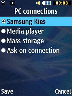 Scroll to Samsung Kies and press the Navigation key.