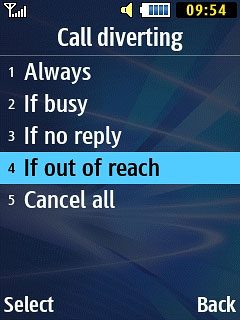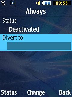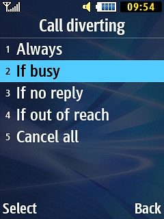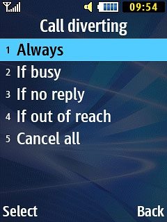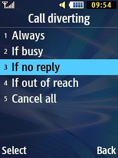 Scroll to Call diverting and press the Navigation key.