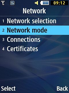 Scroll to Network mode and press the Navigation key.