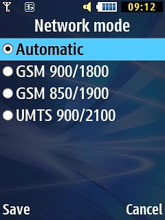 Highlight Automatic, GSM 900/1800, GSM 850/1900 or UMTS 900/2100 and press the Navigation key.