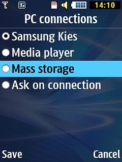 Scroll to Mass storage and press the Navigation key.