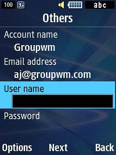 Highlight the name of the email account you've just set up and press the Navigation key.