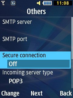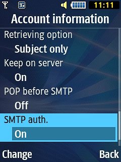 Scroll to SMTP auth. and press Change to turn the function on or off.