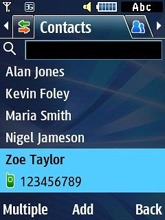 Highlight the required contact and press the Navigation key.