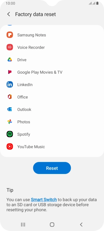 Press Factory data reset.