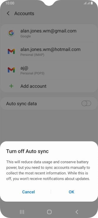 Press the indicator next to "Auto sync data" to turn the function on or off.