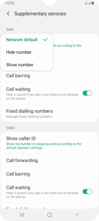 Press Show caller ID below the required SIM.