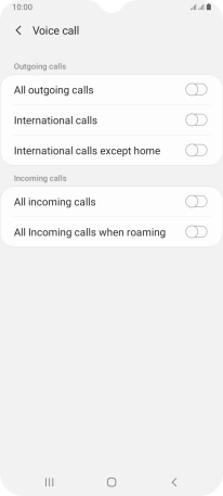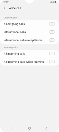 Press the indicator next to the required barring type to turn the function on or off.