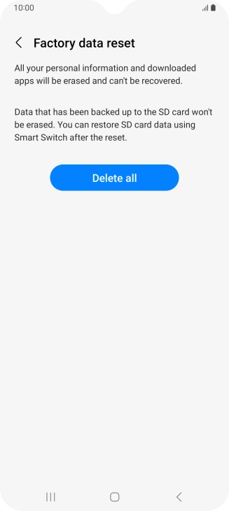 Press Delete all. Wait a moment while the factory default settings are restored. Follow the instructions on the screen to set up your phone and prepare it for use.