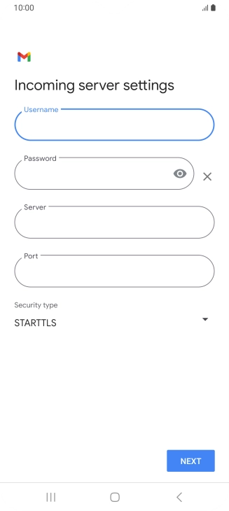 Press the field below "Username" and key in the username for your email account.