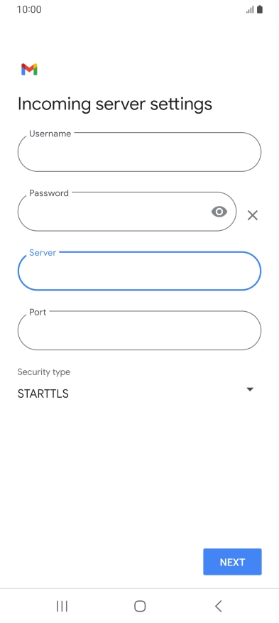 Press the field below "Server" and key in the name of your email provider's incoming server.