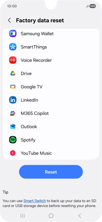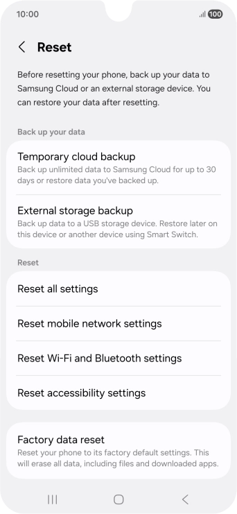 Press Delete all. Wait a moment while the factory default settings are restored. Follow the instructions on the screen to set up your phone and prepare it for use.