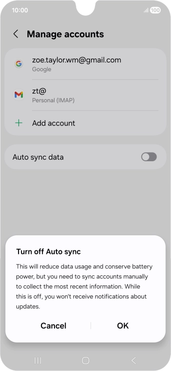 Press the indicator next to "Auto sync data" to turn the function on or off.