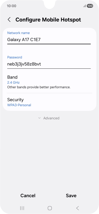 Press WPA3-Personal to password protect your Wi-Fi hotspot.
