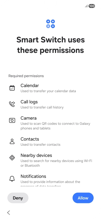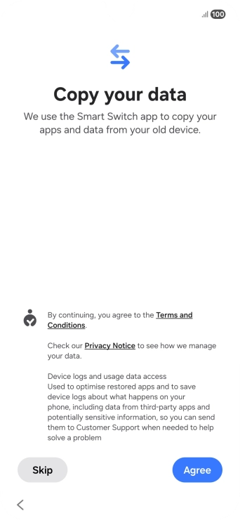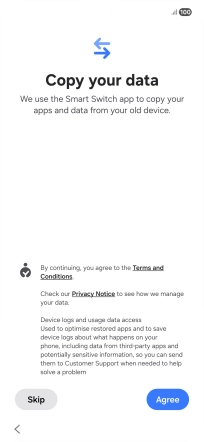 You can transfer the contents of another phone to your phone when it's activated for the first time and after a factory reset. When this screen is displayed, your phone is ready to transfer content from another phone.
