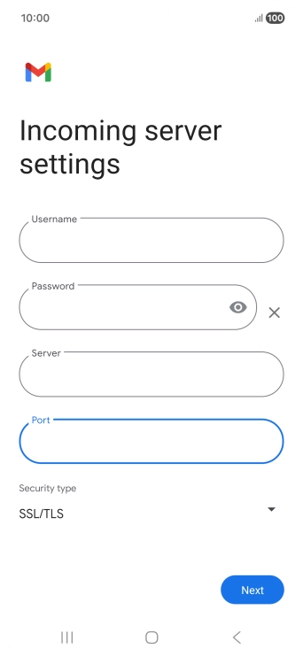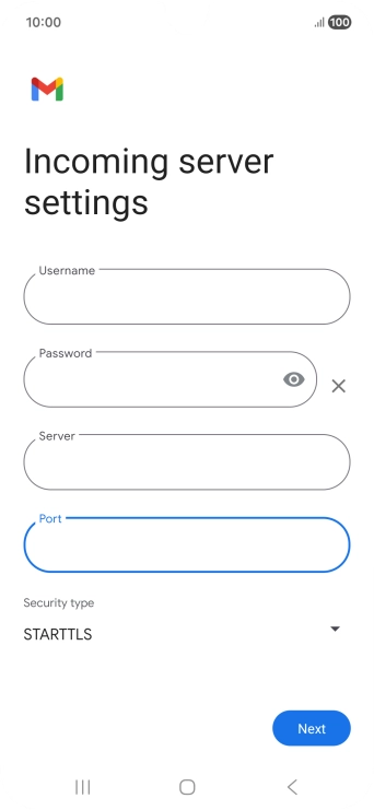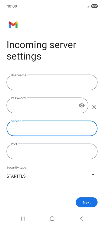 Press the field below "Server" and key in the name of your email provider's incoming server.