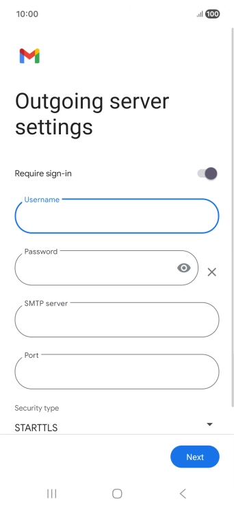 Press the field below "Username" and key in the username for your email the email provider's outgoing server.