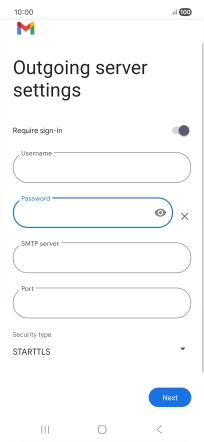 Press the field below "Password" and key in the password for your email provider's outgoing server.