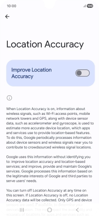 If you press the indicator next to "Improve Location Accuracy" to turn off the function, your phone can find your exact position using the GPS satellites but it may take longer as there is no access to supplementary information from the mobile network or nearby Wi-Fi networks.