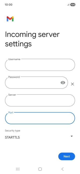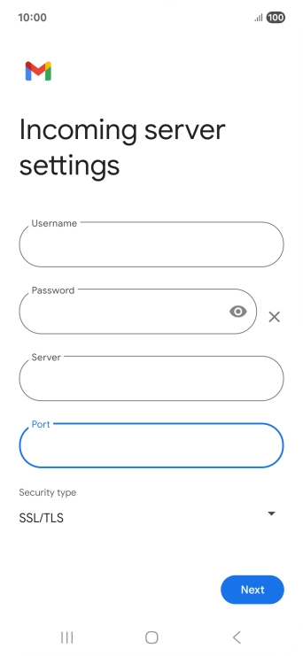 Press the field below "Server" and key in the name of your email provider's incoming server.