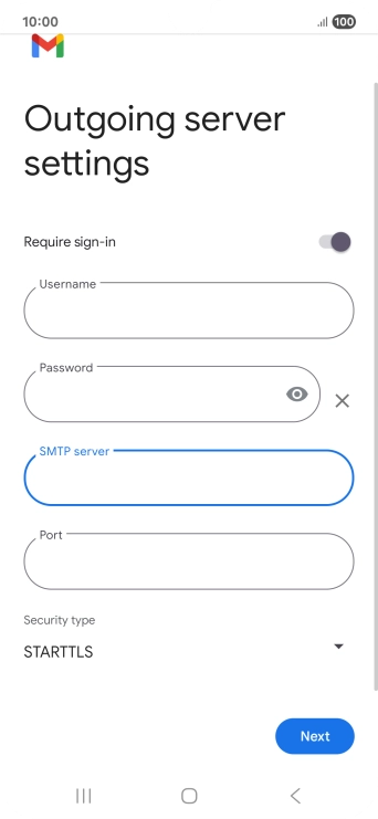 Press the field below "SMTP server" and key in the name of your email provider's outgoing server.